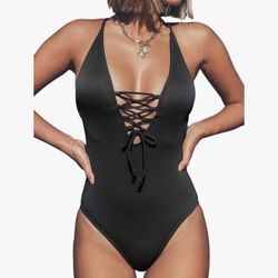 Women's Solid Color V Neck Lace Up One Piece Swimsuit-Large$15El Paso, TX