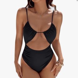 One Piece Swimsuit for Women Bathing Suits Twist Front Cutout Adjustable Straps Ruched Swimwear-LARGE$15El Paso, TX