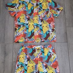 Pokemon Pikachu Men's Lg Button Down Shirt & Swim Trunks Set 2021 RARE $42El Paso, TX