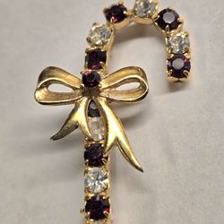 Vintage Goldtone Eisenberg Ice Candy Cane Brooch With Red & Clear Rhinestones$32El Paso, TX