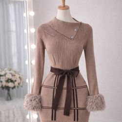 Vestido tejido súper elegante con detalle de peluche en las mangas y lazo en la cintura 😍$30El Paso, TX