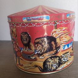 Vtg Paul Friis Circus Big Top Lg Cookie Tin Embossed Images Colorful Lion Monkey$15El Paso, TX