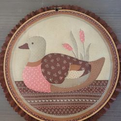 Vtg Duck Embroidered Canvas Hoop 12x12 Round With 1" Lace Border$14El Paso, TX