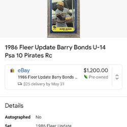 Barry Bonds Rated Rookie Card$1,000El Paso, TX