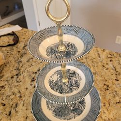 Vintage Currier and Ives Tidbit Tray 3 Tier Blue and White Royal Ironstone $35El Paso, TX