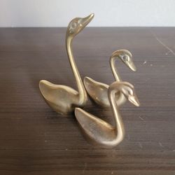 Vtg Solid Brass Swan Figurines MCM- Set Of 3 -- 4" & 2"$29El Paso, TX