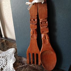 Carved Out Of Wood Fork and Spoon Wall Decor 22" Tiki Bar Totem$18El Paso, TX