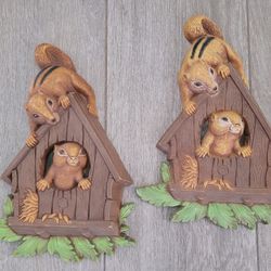 Vintage Homco Squirrel Chipmunks in Bird House Plastic Wall Art Home Decor 1977 $8El Paso, TX