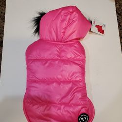 Justice Pet Reversible Hot Pink Puffer Jacket with Black Faux Fur Trim Size XS $20El Paso, TX