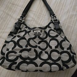 Coach Purse Coach hand Bags Coach Logo Purse In Black And white Original A lot of packets inside zipper in the middle. Medium size.