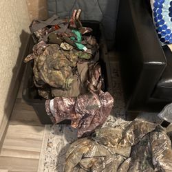 Large Bin Filled With Hunting Gear!! 2 Overalls (l) And XL. Also 4pairs Of Hunting Gloves And Winter Gear As Well As 2 Ghillie Suits! Caps And Gear $300El Paso, TX
