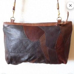 Vintage 1980s Patchwork Leather Brown bag Clutch Causual bag Rectangular Brown $10Ysleta Sur, TX