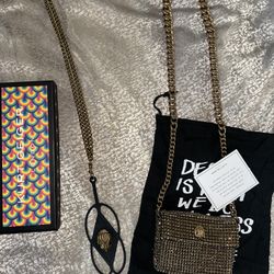 Kurt Geiger London gold embellished chain Mini Party Rhinestone Crossbody Bag purse new bolsa $145El Paso, TX