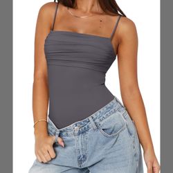 PINKMSTYLE Womens Sleeveless Ruched Spaghetti Strap Tank Top Bodysuit Sexy Going Out Tops Dark Gray Medium$10El Paso, TX