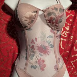 bodysuit in pink flowered lace corset Sz XS🌸$14El Paso, TX