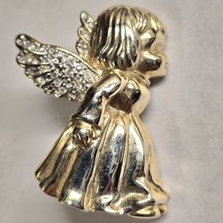 Vintage Goldtone Roman Angel Brooch Pin With Clear Rhinestones Wings 1.25"$16El Paso, TX