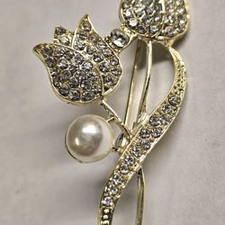 Goldtone Rhinestones Tulips with Faux Pearl Brooch Pin$18El Paso, TX