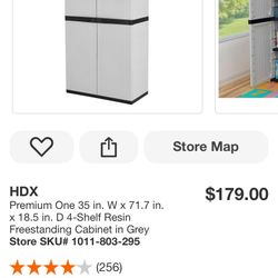 HDX Premium One 35 in. W x 71.7 in. x 18.5 in. D 4-Shelf Resin Freestanding Cabinet in Grey Have 6 items Same condition 109.00 ea$109El Paso, TX