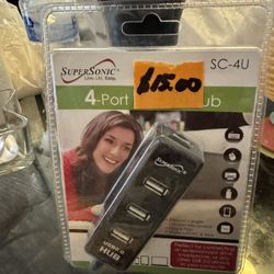 (SUPER SONIC LIVE LIFE EASY 4” PORT USB 2.0” HUB BLACK PORTABLE CHARGER)$15Ysleta Sur, TX