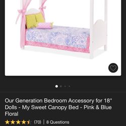 18 inch doll canopy wooden bed with dresser and rotating shelf$30El Paso, TX