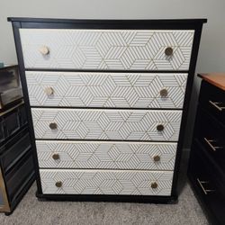 Dresser 5 Drawer Solid Wood Expresso/Graphic Design in White & Gold/ Gold knobs47.5"×40"×18" Excellent condition $100El Paso, TX
