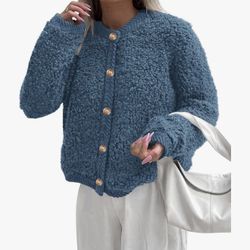 Women's Fleece Button up Shearling Cropped Jacket, Trendy Outerwear-LARGE$10El Paso, TX