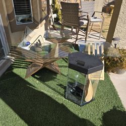 Glass Coffee Table, Two End Tables, Plus fish Bowl, And Glass Office Desk$125El Paso, TX