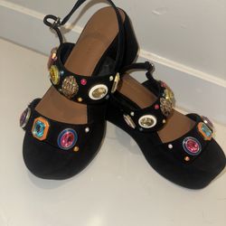 Kurt Geiger platform black gem suede miu Embellished Sandals 9.5 London heel new$95Fort Bliss, TX