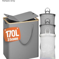 170L Laundry Hamper with Lid 3 Section, Extra Large Laundry Basket with 3 Removable Bags$30El Paso, TX