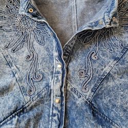 Vtg Tina Woo For Mass Denim Button Up Jacket-M Stonewash Blue, Flowers,$18El Paso, TX