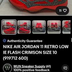 Nike Air Jordan 11 retro Low IE Flash Crimson Size 10$120El Paso, TX