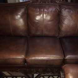 Wood/Leather Paisley Couch Set (Ashley furniture)$900El Paso, TX