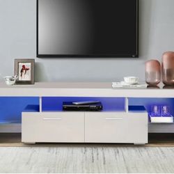 White TV Stand With LED Remote Control With Storage Cabinets And Glass Shelves$110El Paso, TX