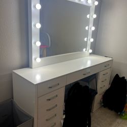 Vanity desk with Square Mirror and Light- w Drawers- White$159El Paso, TX