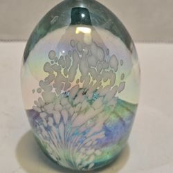 Irridescent Aqua Blue Glass Egg Signed CSS 89 Art Glass Painted Flower Spray$35El Paso, TX