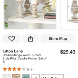 Litton Lane Cream Mango Wood Turned Style Pillar Candle Holder (Set of 3)$19El Paso, TX