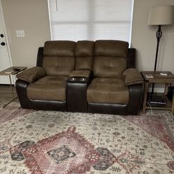 Leather Love Seat Recliner And Cocktail Table With Tempered Glass$300El Paso, TX