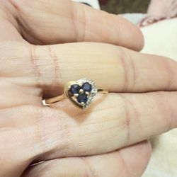 🎁Genuine 14k Yellow Gold Ring With Zaphires And Diamonds- Heart Shape🎁$200El Paso, TX