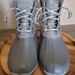 Sperry Saltwater Metallic Boots Grey Waterproof Rubber Duck Boot Size 6.5$26El Paso, TX