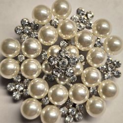 Vintage Style Silvertone Brooch With Clusters Of Faux Pearls & Rhinestones 2"$22El Paso, TX