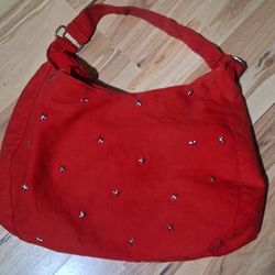 Used Pretty red denim bag with silver star decoration, closes with a snap button in good condition$6El Paso, TX