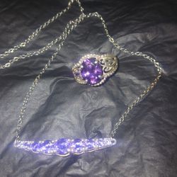 Sterling Silver Amethyst Necklace/Ring Set Sz 7.25$65El Paso, TX