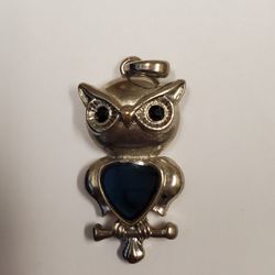 Vintage Miniature Owl Charm Pendant Silvertone With Dark Blue Enamel $23El Paso, TX