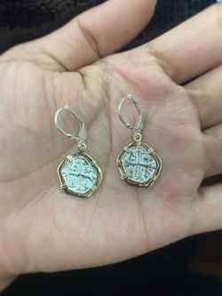 Atocha silver coin dangle earrings In 14Kt gold bezel$240El Paso, TX