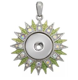 Green and crystal sunflower snap button pendant$12Fort Bliss, TX
