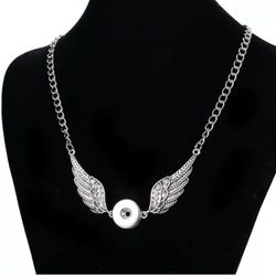 Silver winged 18mm snap button necklace$15El Paso, TX