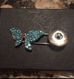 Blue crystal butterfly snap button pin$6Fort Bliss, TX