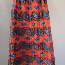 Vtg Quilted Skirt Long Maxi Orange Floral Paisley Boho '70s Retro Pockets$49El Paso, TX