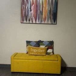yellow tufted storage ottoman bench with frame and pillows$100El Paso, TX