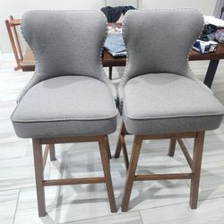 Moving Our Sale 2 Bar Stools 30 " Swivel Gray/ Walnut Silver Studs Excellent Condition$240El Paso, TX